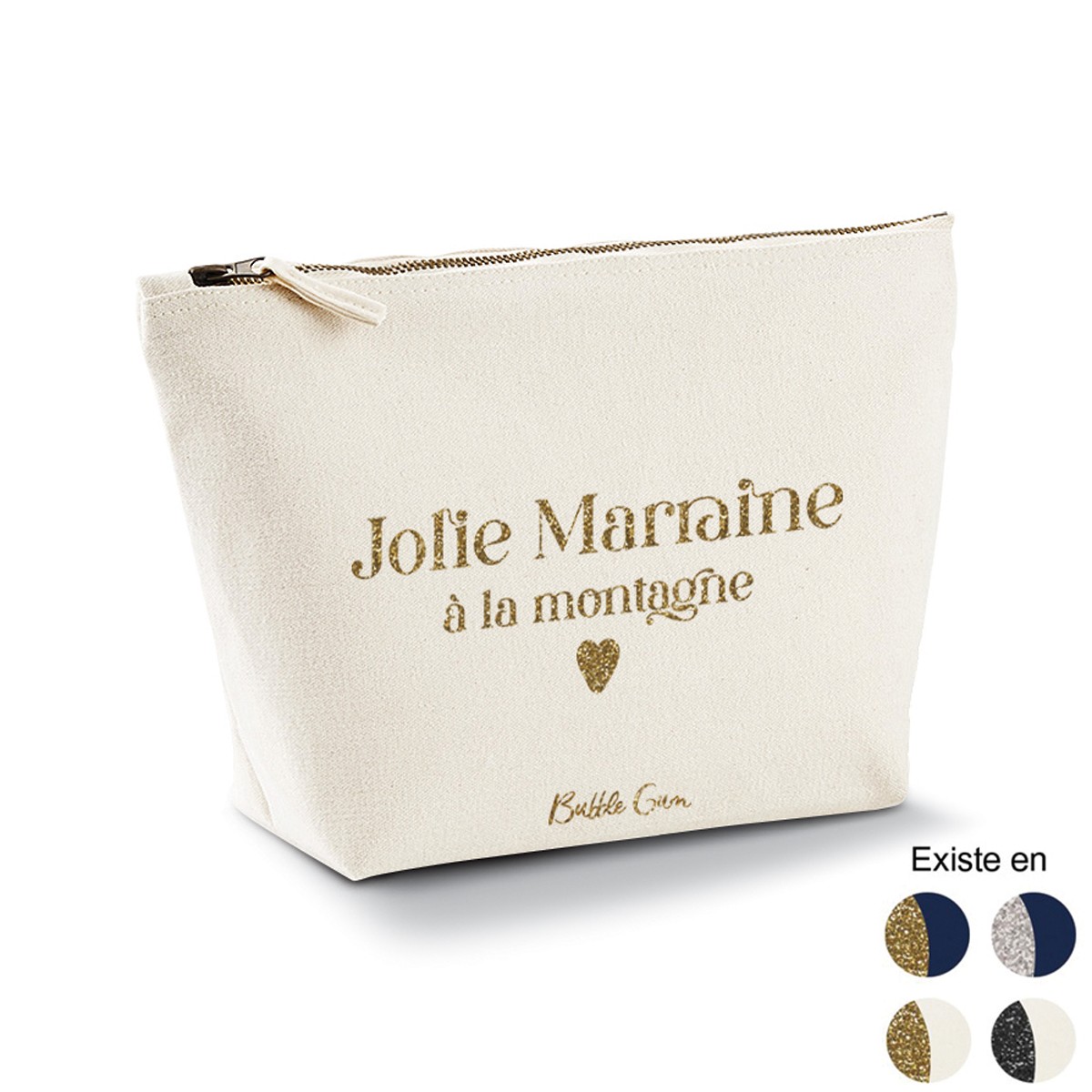Trousse en coton bio. Taille S : (L)19 x (H) 11 (P)6 cm.. Existe en 2 coloris suivant les références avec paillettes couleurs différentes